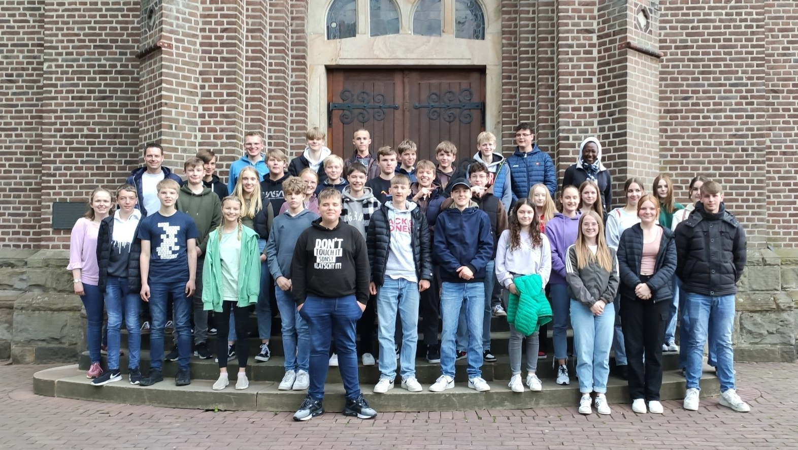 Am Abend vor der Firmung fand in Hiddingsel ein gemütlicher Abschluss der Firmkatechese statt. Nach einem kurzen Rückbick mit Besinnung in der Kirche, saßen anschließend alle 35 Jugendlichen mit dem Katecheseteam bei Pizza und Getränken im Pfarrheim zusammen. Dabei entstand auch das einzige Foto der gesamten Gruppe.
