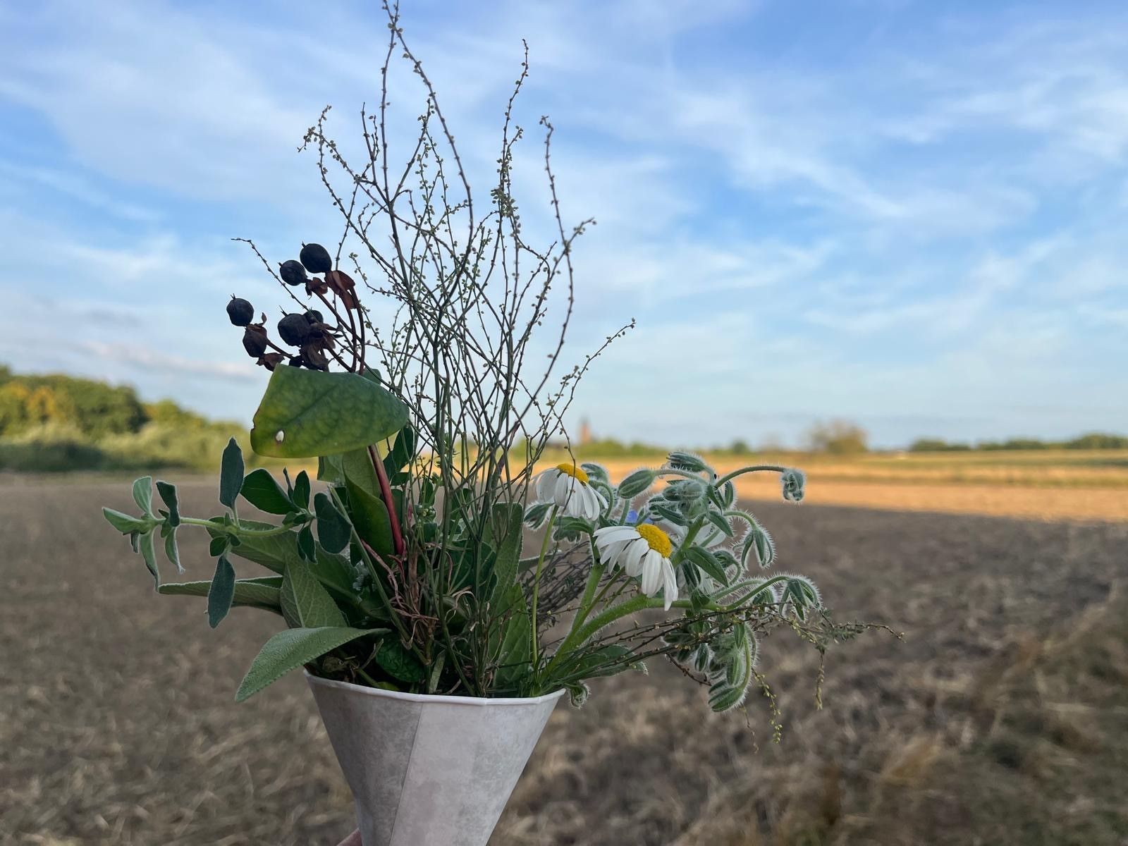 Zu einem Spaziergang zum Hochfest Maria Himmelfahrt hat der Liturgiekreis der Seelsorgeeinheit eingeladen. Um 18.00 Uhr hat sich eine kleine Gruppe auf den Weg gemacht. Unterwegs standen Kräuter und Blumen bereit, damit