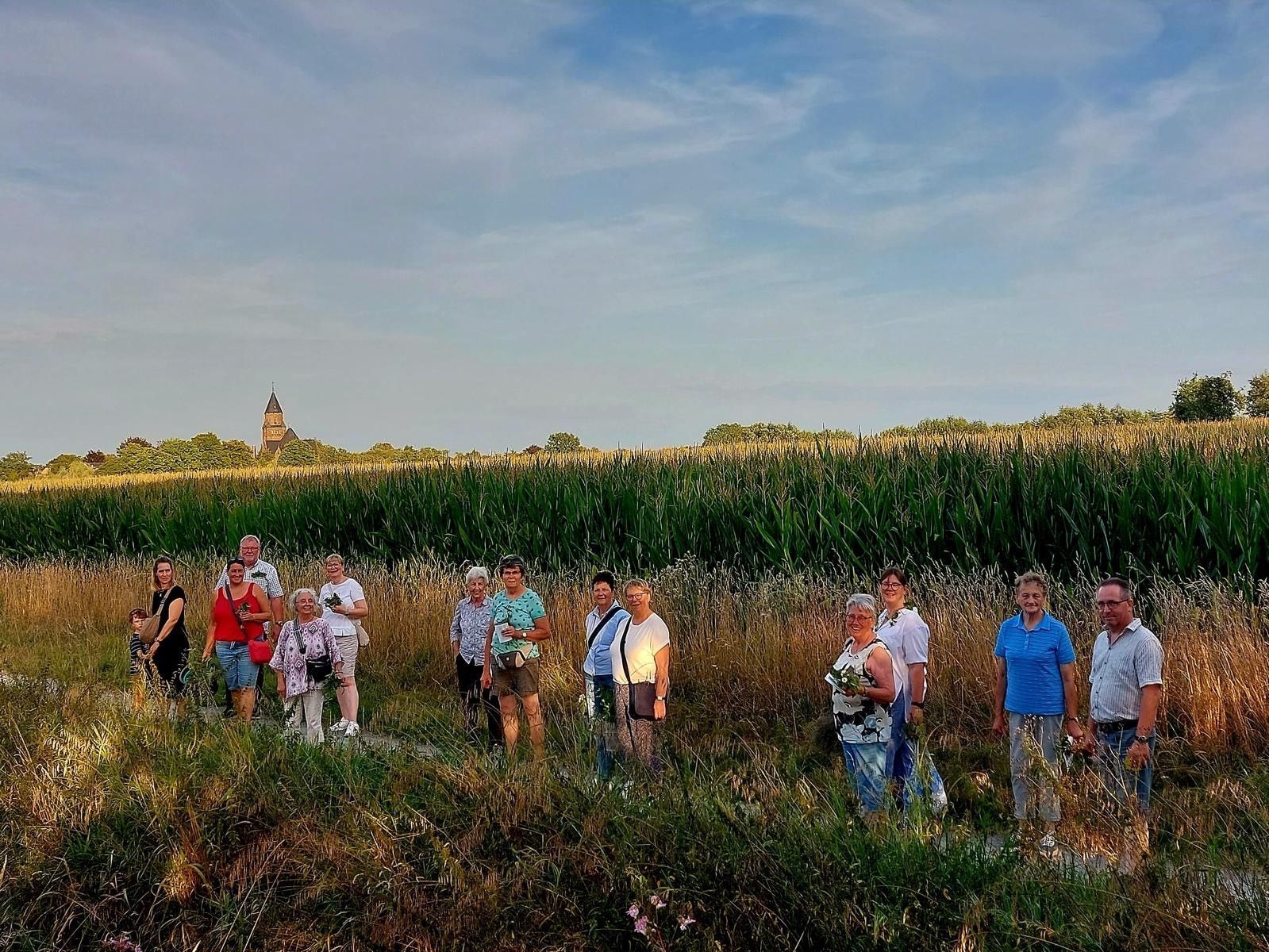 ein kleines Kräutersträußchen gebunden werden konnte. Auf dem Hof Schlautmann wurden die Spaziergänger herzlich begrüßt und es wurde ein Wortgottesdienst gefeiert. Der gesellige Abschluss fand am Pfarrheim in Hiddingsel statt.